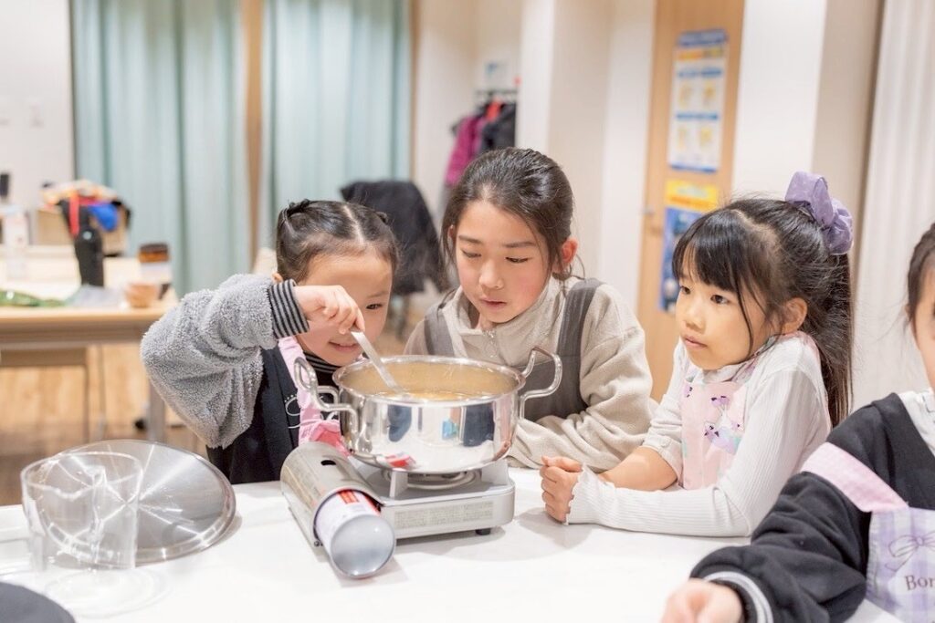 具材をたっぷり入れた子どもたちは、